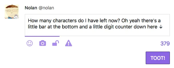 在 Pinafore 中,输入框下面的小提示条和“剩余字符”提示会随着输入而更新。