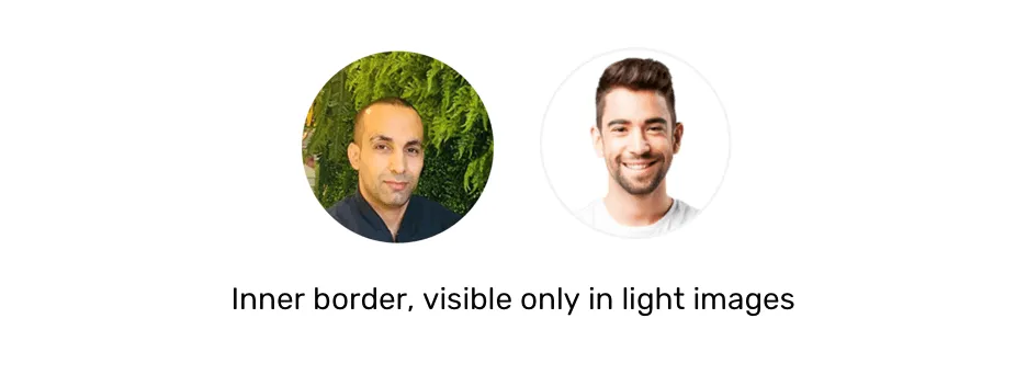 现在的问题是,要添加一个内边框,我们不能使用内嵌框阴影,因为它在图片上不起作用。解决的办法是将头像包裹在 <div> 中,并为内边框添加一个专用元素。