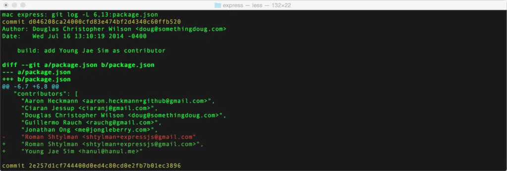 如果这些都不好用,git 还有一个 --pretty 参数,可以用来创建高级自定义输出。
